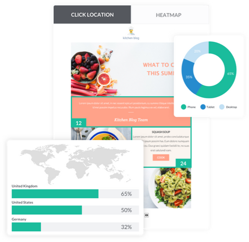 Publicate dives a bit deeper however, providing you with insight into how each newsletter performs against previous ones, shows you what your top performing content is and provides engagement metrics like click and heat maps.