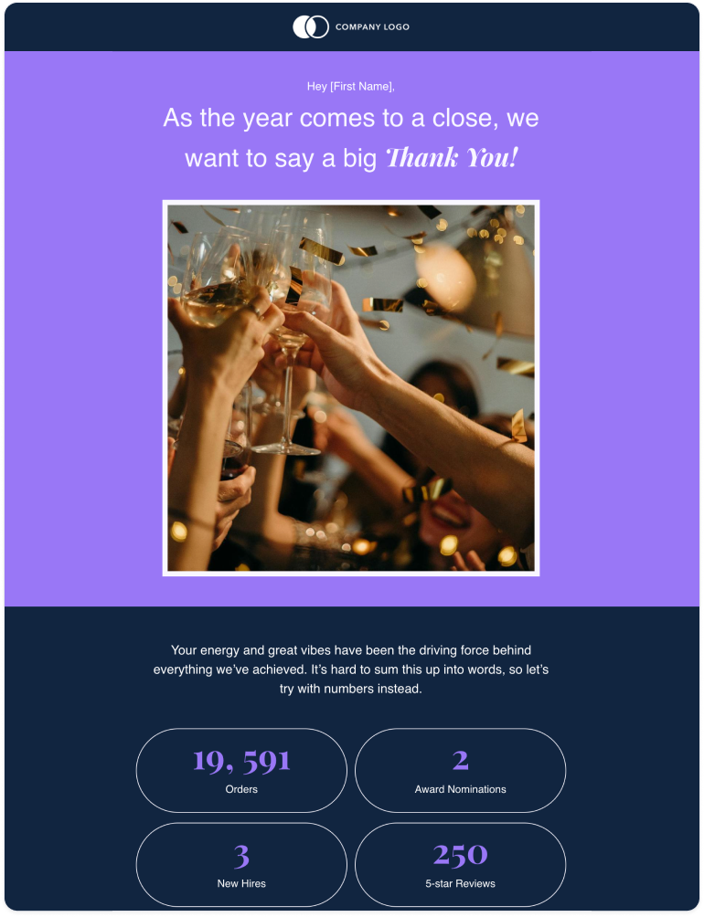 Let’s kick off the list with a responsive email template that is sure to have an impact on its readers. A lot has happened in the past year, and it’s important to celebrate the wins with your employees.
