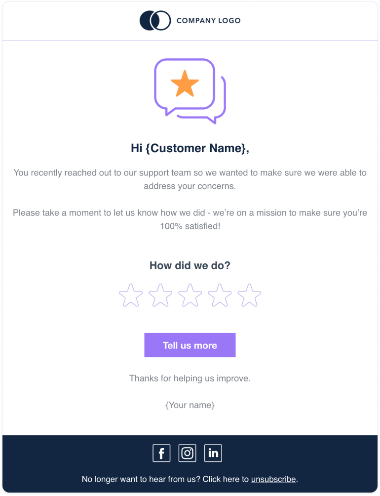 This survey invitation email is designed to make sure you’re providing the best support possible. If the customer still has some concerns, they should feel free to voice them here.