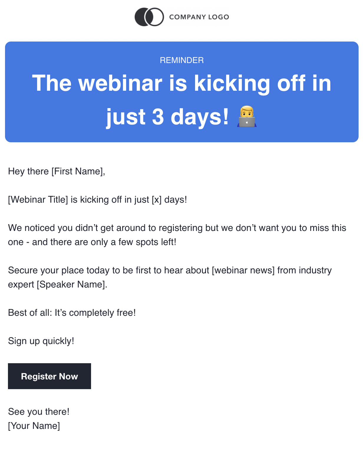 Even interested recipients can forget to register for your webinar. Life happens, so we have to give them a nudge to boost response rates and maximize the chance of a successful webinar.